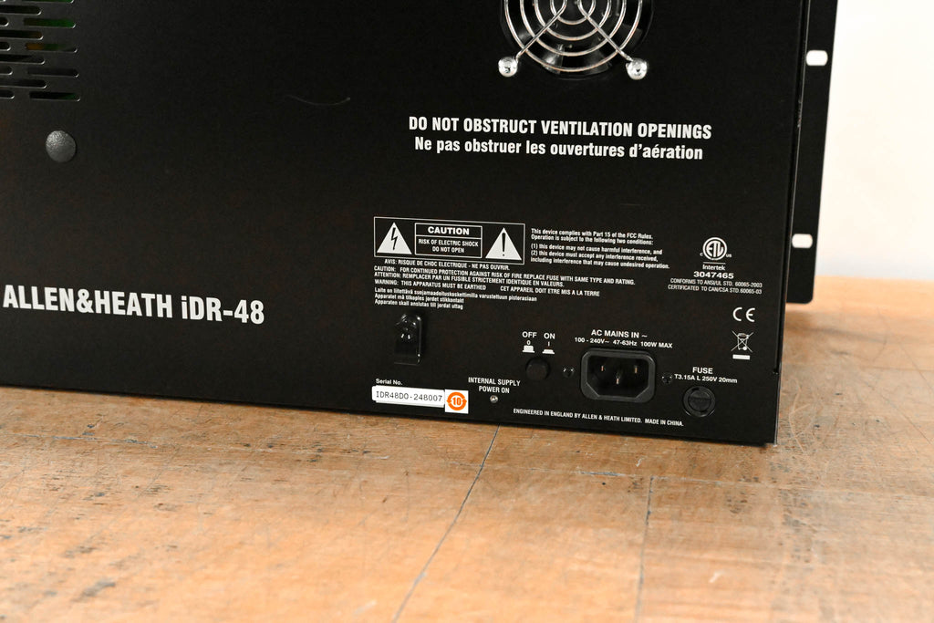 This unit is equipped with an AES Card. Firmware: Version iDR48 V1.90 48 Inputs, 20 XLR Outputs, 2 AES XLR Outputs