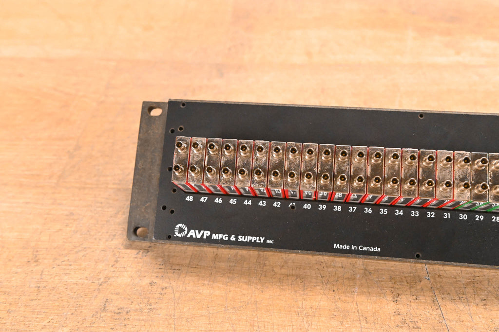 This unit is partially populated and includes (23x) KMN75 normalled modules and (12x) KM75 isolated (non-normalled) modules. Remaining positions are unpopulated. Rear connections are solder-lug style TT terminals.