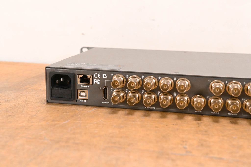 Supports NTSC/PAL/HD/UHD 4K at 10-bit Supports 4K Resolution over SDI or HDMI 1 x HDMI & 10 x 6G-SDI Inputs Tri-Sync/Black Burst Ref Sync Input 10 x Built-In Frame Synchronizers Multiview Monitoring in HD Program Outputs in UHD/HD/SD 4 x Keyers Total: 3 x Luma, 1 x Chroma