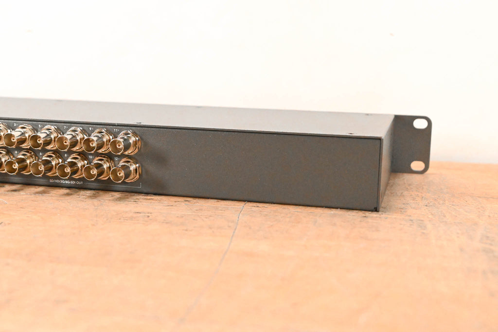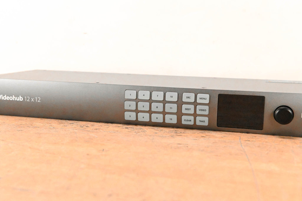 Routing Switcher 12 x 6G-SDI Inputs / 12 x 6G-SDI Outputs Supports SD, HD, Ultra HD 4K, DCI 4K 4:2:2 and 4:4:4 Sampling 10-Bit Processing SDI Reclocking Built-In LCD with Spin Knob Control Push Buttons on Front Panel Ethernet for Remote Control