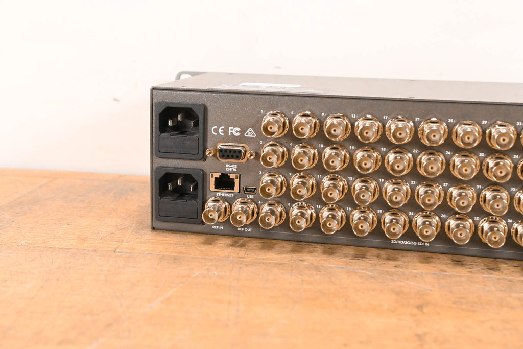 Routing Switcher 40 x 6G-SDI Inputs / 40 x 6G-SDI Outputs Supports SD, HD, Ultra HD 4K, DCI 4K 4:2:2 and 4:4:4 Sampling 10-Bit Processing SDI Reclocking Built-In LCD with Spin Knob Control