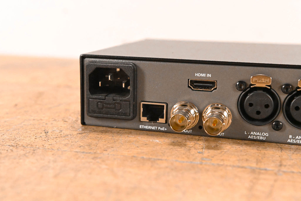 Advanced High-Data Rate Signal Converter Supports Up to 4K DCI 4096x2160p Signals Two Independent 12G-SDI Outputs Run 4096x2160p 70 ft Using 6G-SDI Cables XLR Connections Switchable to AES/EBU Ethernet Port for Remote Control or PoE