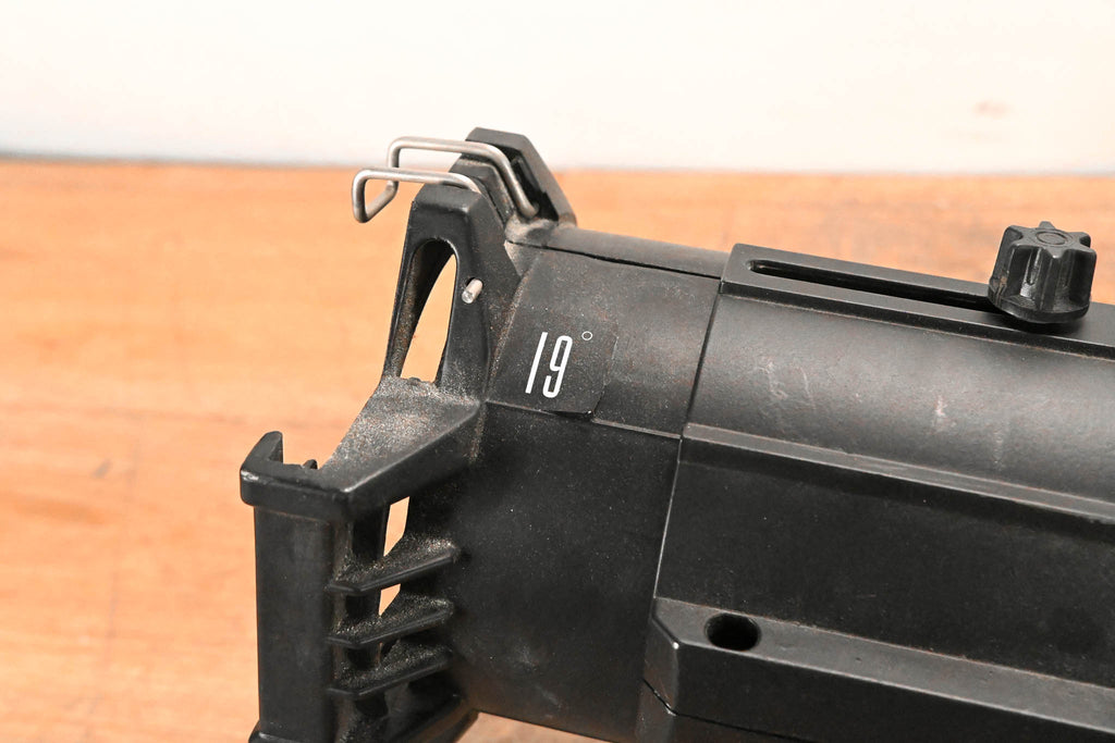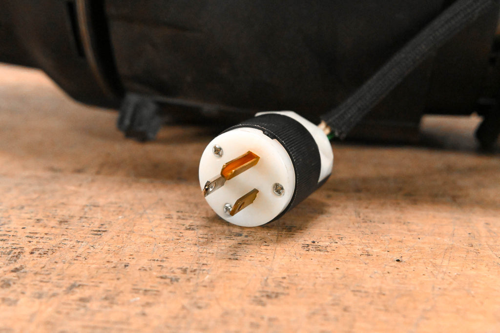 This unit is equipped with an Edison plug, a C-clamp, and a bulb.