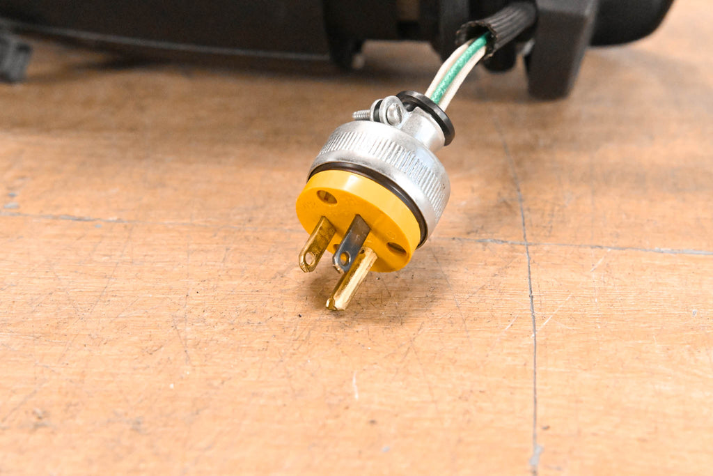 This unit is equipped with a C-Clamp and Edison plug, but does not include a bulb.