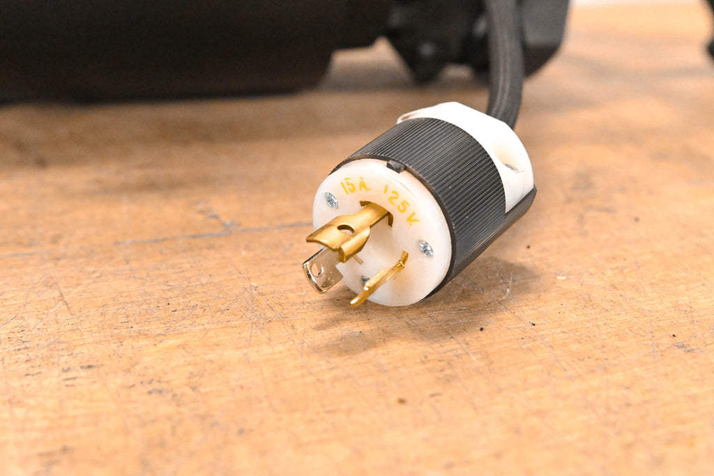This unit is equipped with a C-Clamp and L5-20 plug, but does not include a bulb.