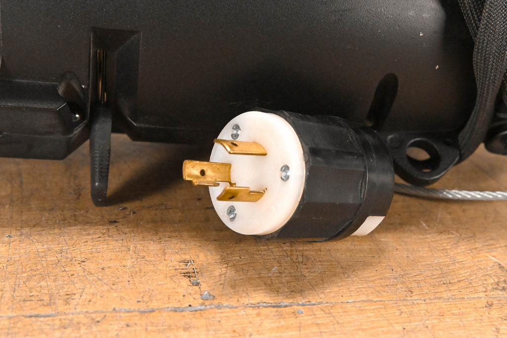 This unit is equipped with a C-Clamp and L5-20 plug, but does not include a bulb.
