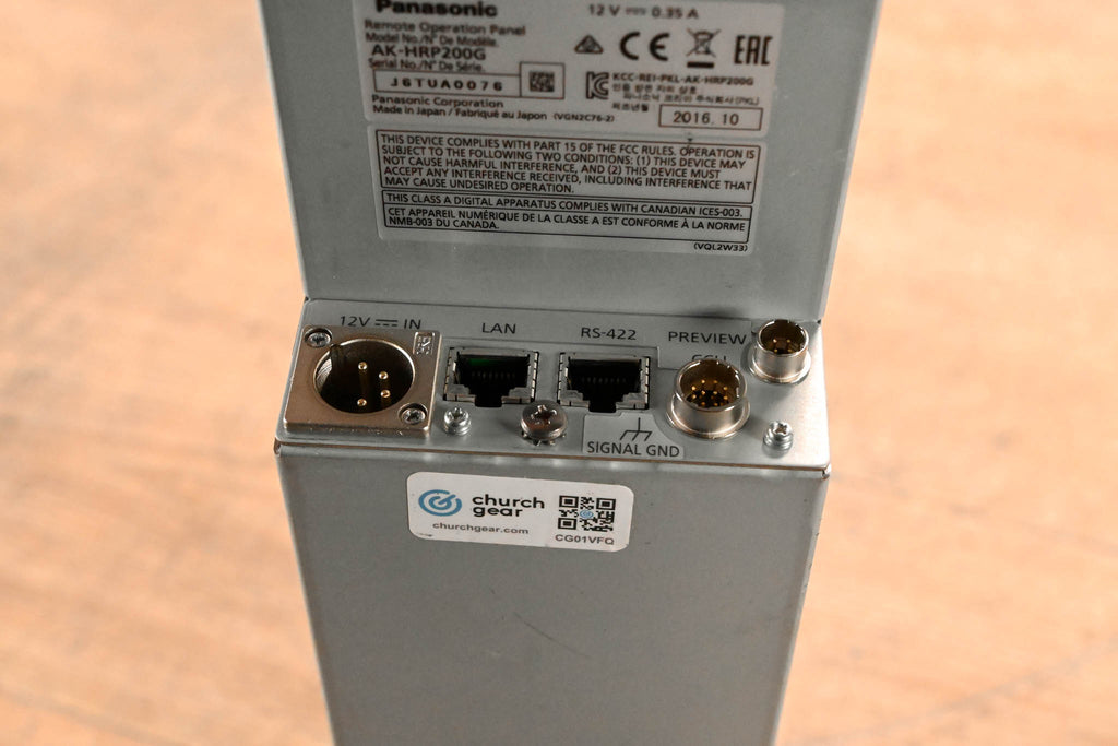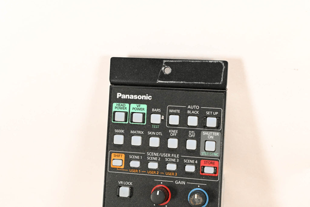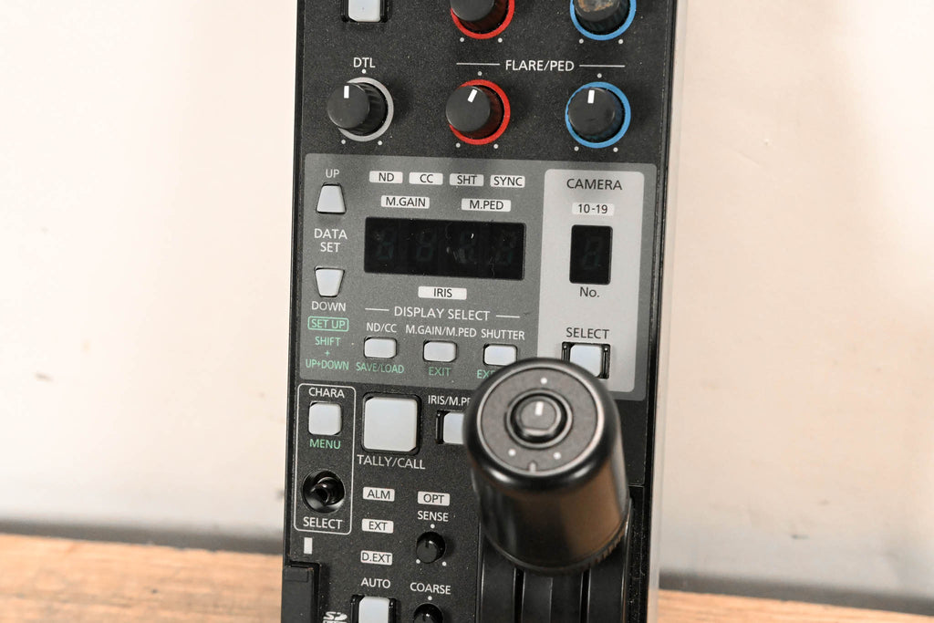 This unit does not include a CCU cable. Compact, joystick-style Remote Operation Panel (ROP) used to precisely control compatible Panasonic studio cameras, camcorders (like the AJ-PX series), and PTZ cameras (AW-HE series) via IP or serial connections