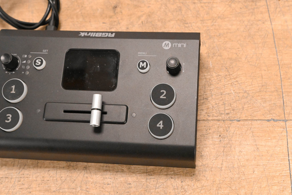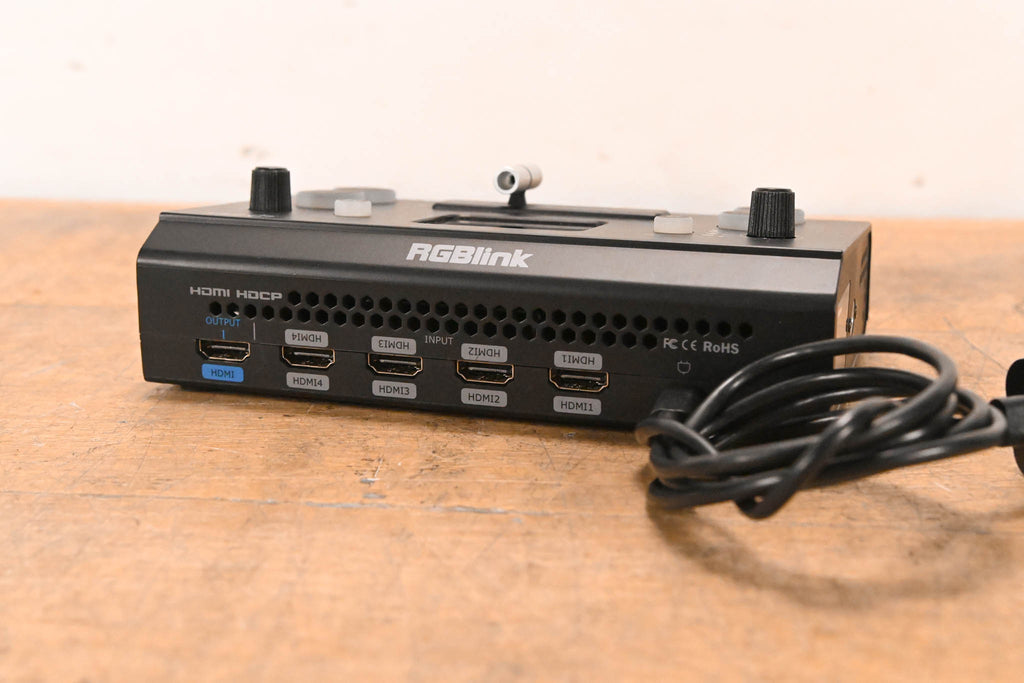 Compact HDMI Video Switcher 4 × HDMI inputs (up to 1080p / 2K) 1 × HDMI output + 1 × USB 3.0 (UVC webcam output) Streams up to 1080p60 Built-in LCD preview display (non-touch) Picture-in-Picture (PiP) modes 14 transition effects Manual switching via buttons and T-bar