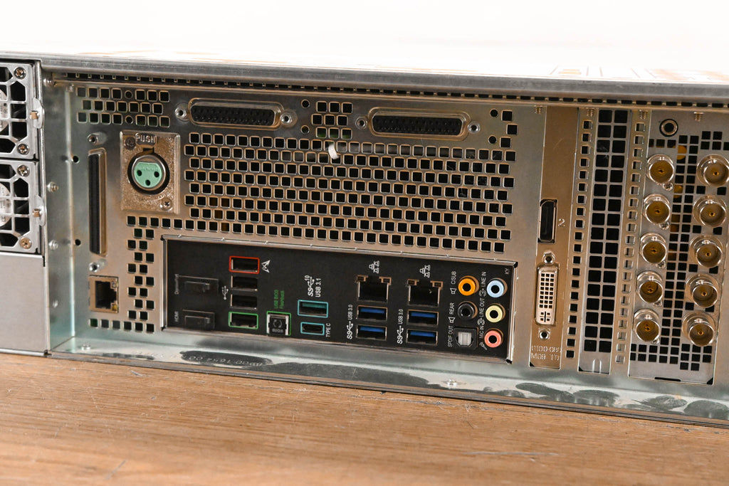 This unit is equipped with (12x)Seagate ST600MM018 600GB 10K SAS Enterprise Performance HDD, leaving 4 bays empty. Includes a Kingston DataTraveler G4 8GB USB Flash Drive one of the unit's empty bays (see photos). M/N: MIRA-AVC-8-01 6, 8 or 12 symmetrical HD/SD video channels Full 1080p 3G support with no channel count reduction Up to three Ultra HD 4K channels Integrated media file import/export functionality tools RAID-6 media storage up to with hundreds of hours of storage at 100Mb/s SSD System Disk with Windows-7 Enterprise O/S