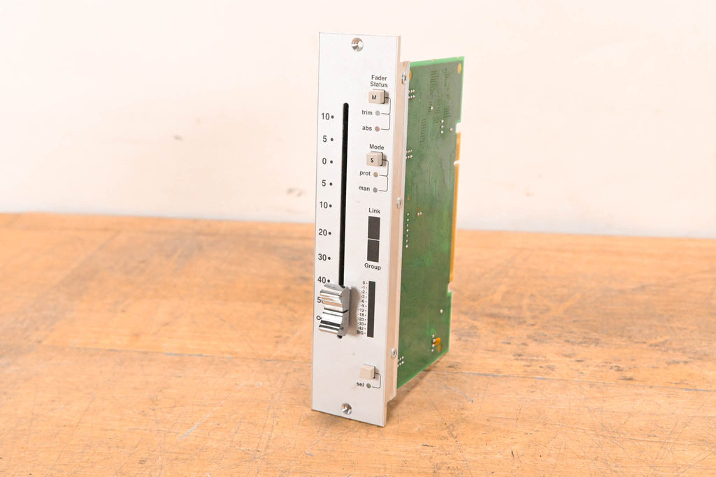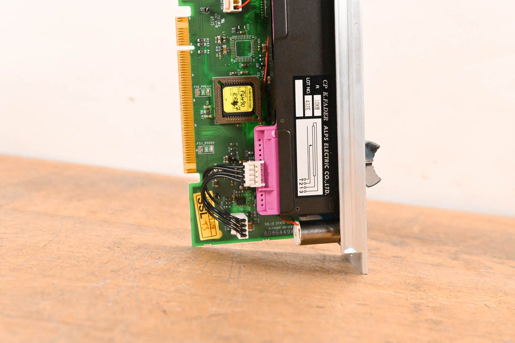 This unit was pulled from an SSL C300 HD console. This module is a complete motorized fader assembly featuring an ALPS 10KB K-Fader and the corresponding SSL control PCB (Rev X3).