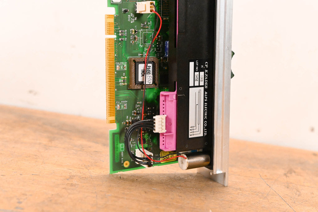 This unit was pulled from an SSL C300 HD console. This module is a complete motorized fader assembly featuring an ALPS 10KB K-Fader and the corresponding SSL control PCB (Rev X3).