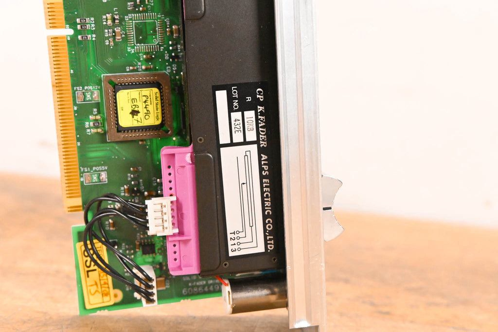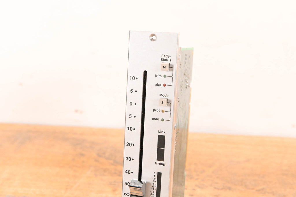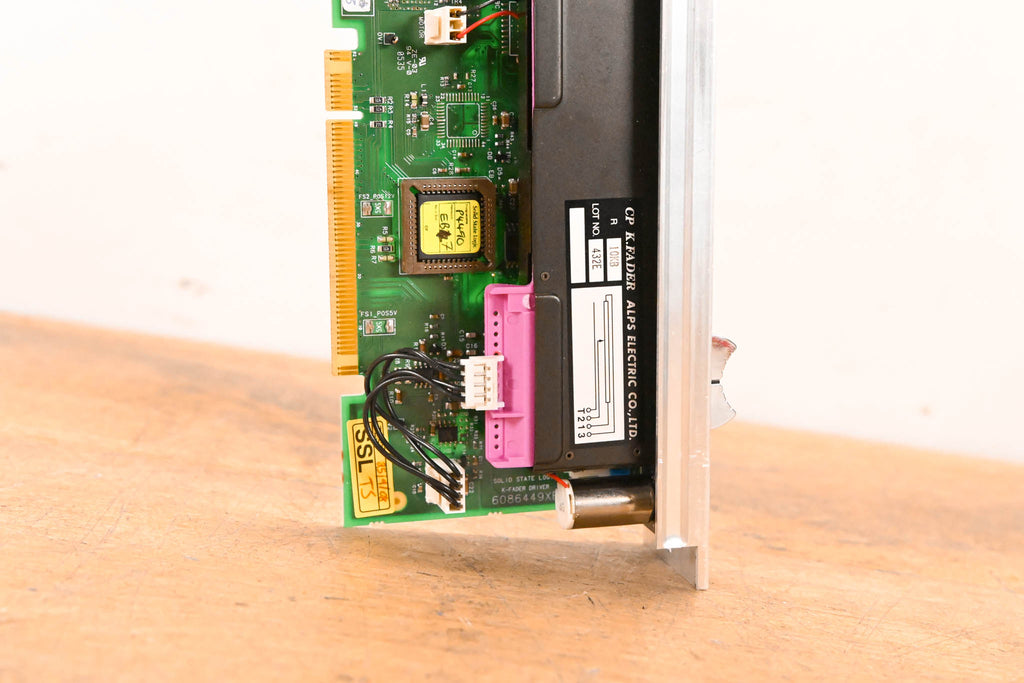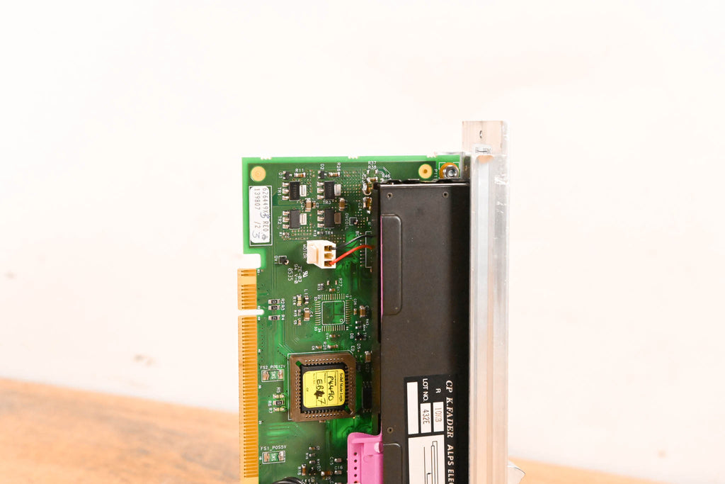 This unit was pulled from an SSL C300 HD console. This module is a complete motorized fader assembly featuring an ALPS 10KB K-Fader and the corresponding SSL control PCB (Rev X3).