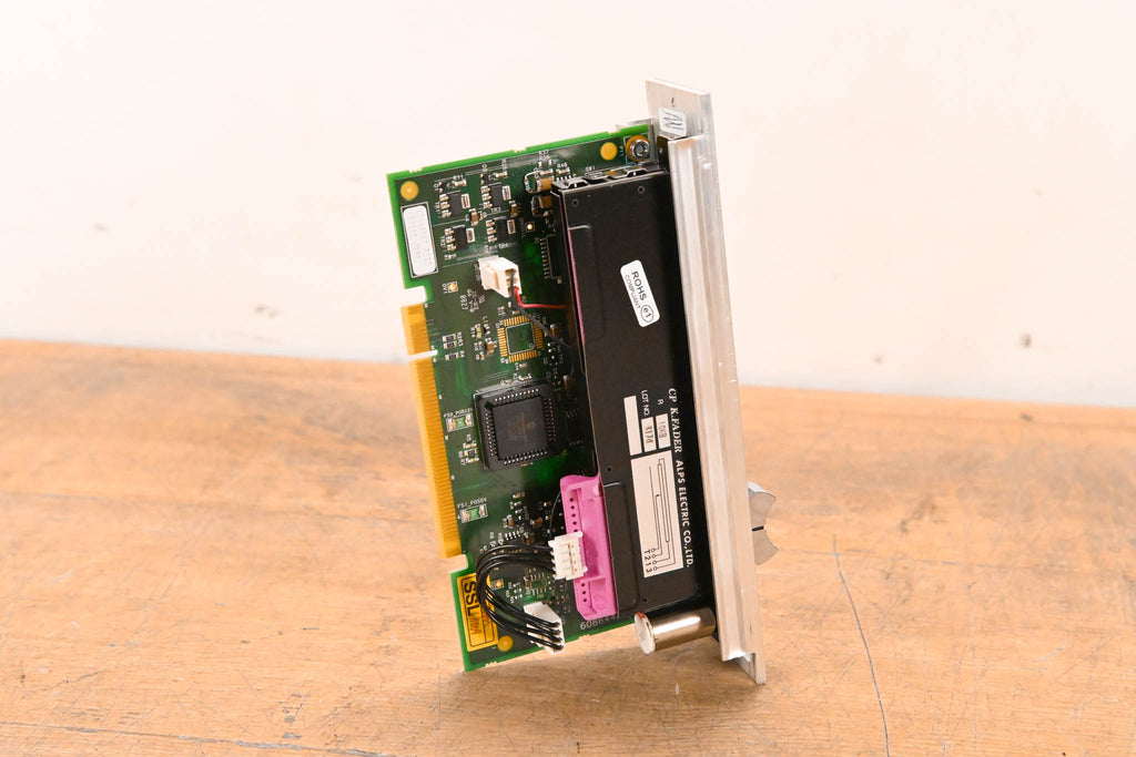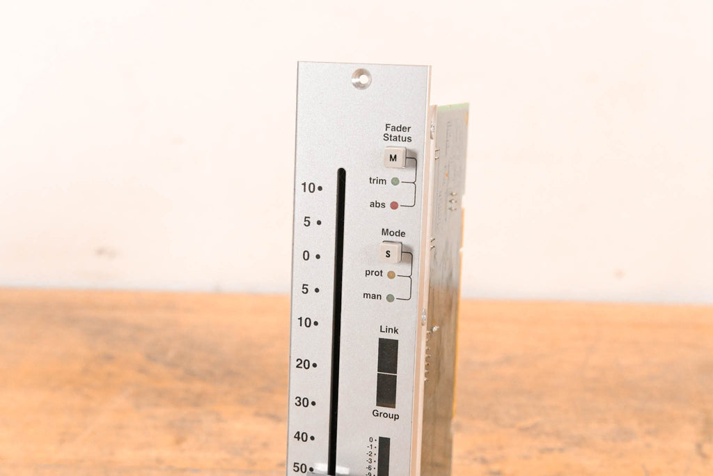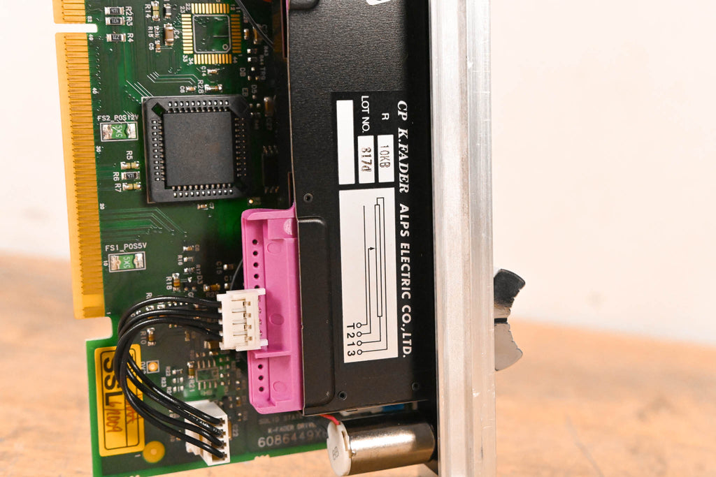 This unit was pulled from an SSL C300 HD console. This module is a complete motorized fader assembly featuring an ALPS 10KB K-Fader and the corresponding SSL control PCB (Rev X3).