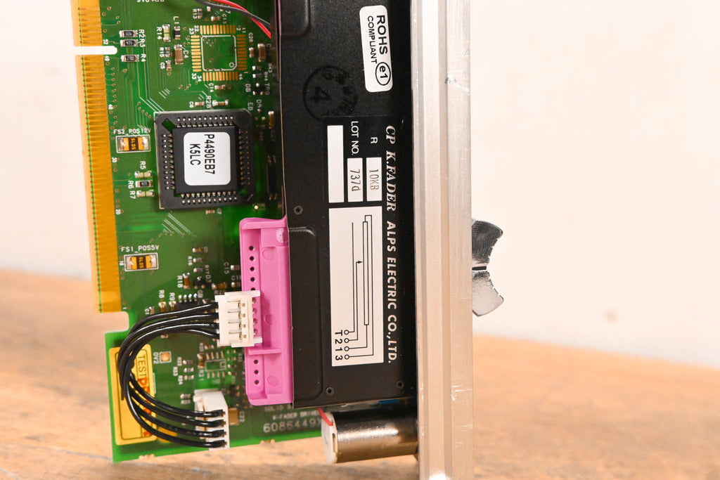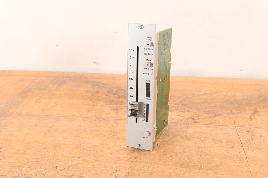 This unit was pulled from an SSL C300 HD console. This module is a complete motorized fader assembly featuring an ALPS 10KB K-Fader and the corresponding SSL control PCB (Rev X3).