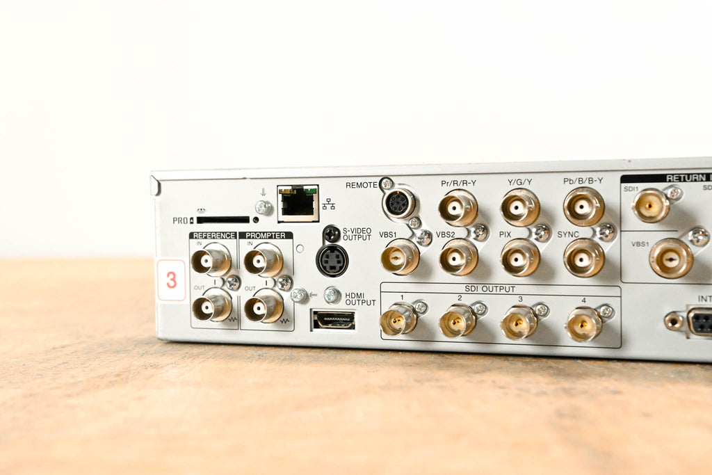 SDI Output - BNC (4x) HD / SD selectable at each pair of 2 outputs Analog Video Output - BNC (3x) Selectable from HD (Y / Pb / Pr or R/G/B) or SD (Y / Cb / Cr or R/G/B) S-Video Output - Mini DIN 4-pin (1x) Output - VBS: BNC (2x) PIX (Monitor, VBS): BNC (1x)