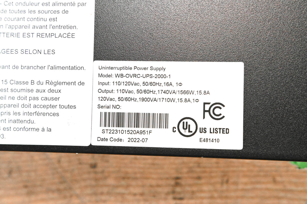 WattBox WB-OVRC-2000-1 2000VA UPS Battery Pack for IP Power Conditioner